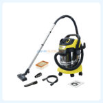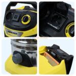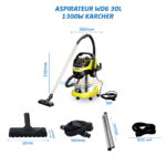 Aspirateur eau et poussières Karcher WD6 1300W avec cuve inox 30L, nettoyage automatique du filtre, prise outils, accessoires complets.