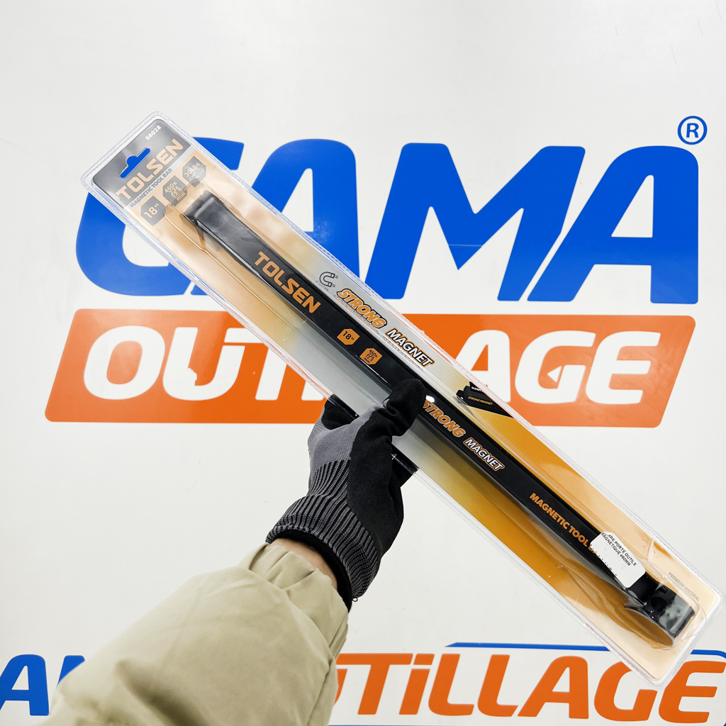 GAMAOUTILLAGE vous propose une cTOLSEN, est un barre porte-outils magnétique est un accessoire de rangement pratique conçu pour maintenir les outils métalliques (tournevis, clés, pinces, etc.) à portée de main. Elle se compose d’une bande métallique contenant des aimants puissants.