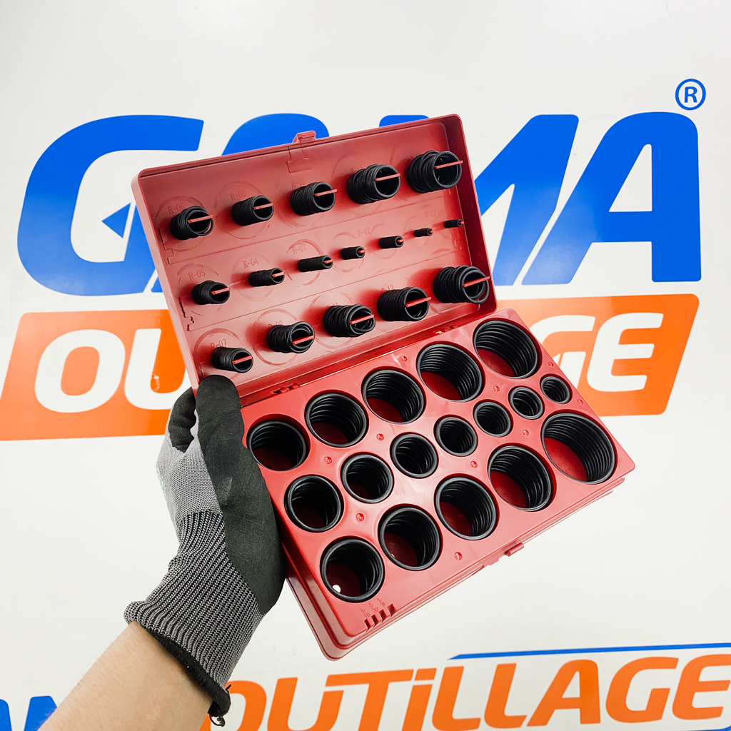 BOITE A JOINT 419PCS TA, est une joints toriques en caoutchouc sont couramment utilisés dans les applications automobiles pour assurer l’étanchéité entre deux surfaces. Ils sont fabriqués en caoutchouc nitrile (NBR), un matériau connu pour sa résistance à l’huile, à la graisse, au carburant et aux produits chimiques.