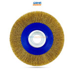 GAMAOUTILLAGE vous propose une BROSSE MET TOURET 200MM JAUNE TA, cette brosse circulaire avec alésage est adaptable sur différentes machines comme les tourets, les meuleuses d’établis ou les bancs de polissage brossages et autres.