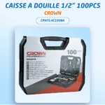 Coffret douilles 1/2″ 100PCS Crown CPHTS-XC100BA, complet avec douilles, clés, pinces, tournevis, embouts et accessoires pour mécanique, bricolage et maintenance.
