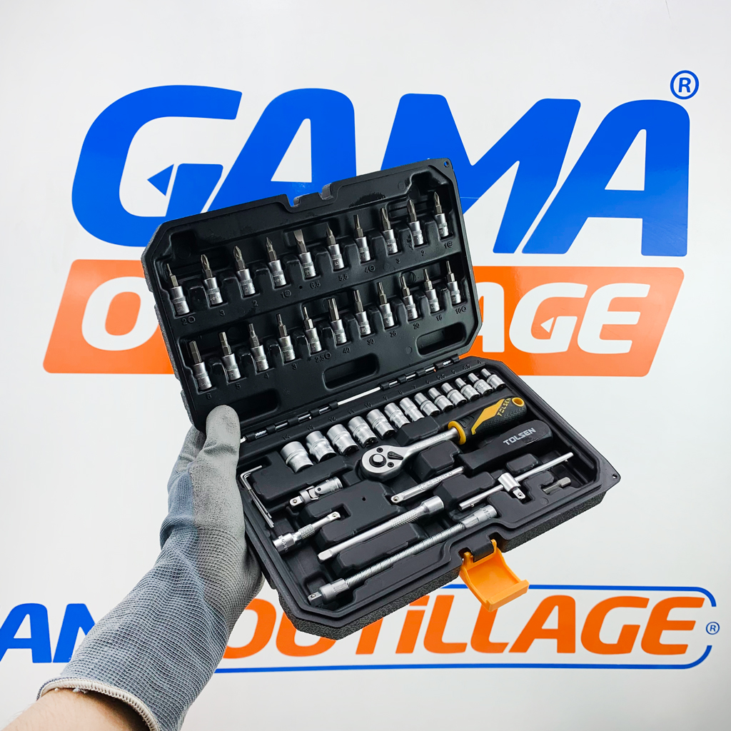 GAMAOUTILLAGE vous propose une CAISSE A DOUILLE 1/4″ 46 PCS du TOLSEN, est un jeu de 46 embouts et douilles 1/4″ de qualité industrielle.