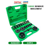 GAMAOUTILLAGE vous propose CAISSE DEMONTE ROULEMENT 24PCS TOPTUL, une st un ensemble d’outils complet conçu pour le démontage et l’installation des roulements de moyeu avant sur une large gamme de véhicules, y compris les voitures à traction avant et les camions légers.