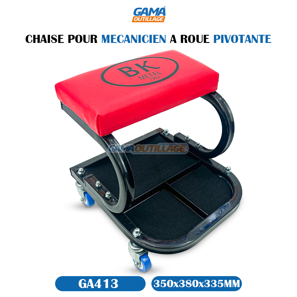 GAMAOUTILLAGE vous propose une CHAISE POUR MECANICIEN A ROUE PIVOTANTE, une chaise conçue pour les mécaniciens qui travaillent sur des voitures ou d’autres véhicules. Elle est équipée de roulettes pour une meilleure mobilité et de réglages en hauteur pour s’adapter à la hauteur de travail de l’utilisateur.