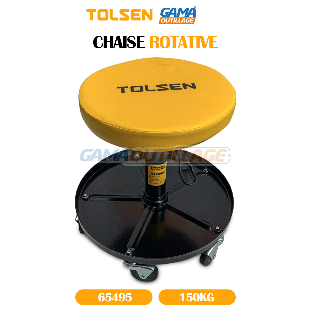 GAMAOUTILLAGE vous propose un CHAISE ROTATIVE 150KG TOLSEN, siège à rouleau pneumatique TOLSEN est un siège de travail mobile conçu pour les ateliers et les garages. Il est doté d’un cadre en acier robuste et d’un siège rembourré pour un confort optimal. Le siège est réglable en hauteur à l’aide d’un vérin pneumatique, ce qui permet à l’utilisateur de trouver la position la plus confortable pour travailler.