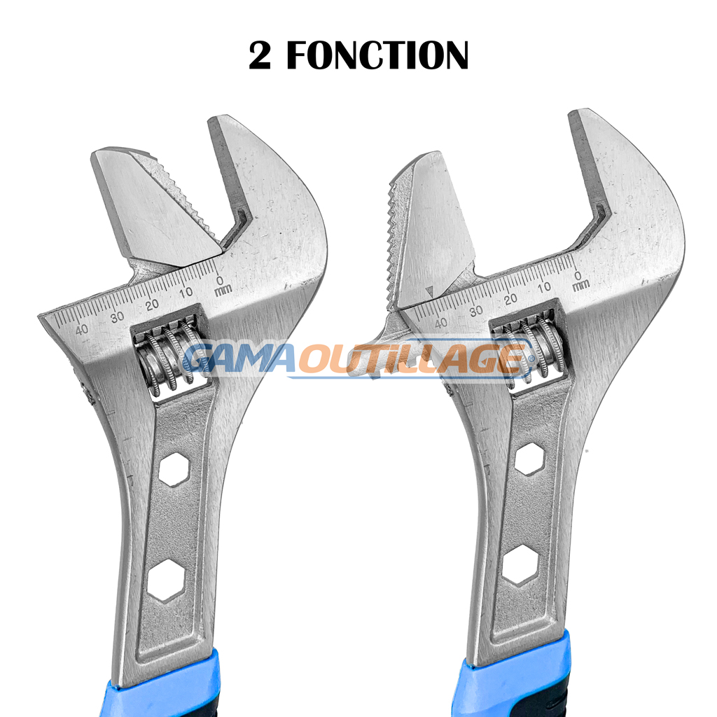- Échelles métriques et impériales La cle molette adopte des échelles doubles métriques et impériales. La poulie est lisse et ne se coince pas, vous pouvez facilement lire et ajuster aux meilleures conditions d’utilisation. L’écrou est ouvert et fermé librement et l’opération est pratique, ça profite à économiser du temps et des éfforts.