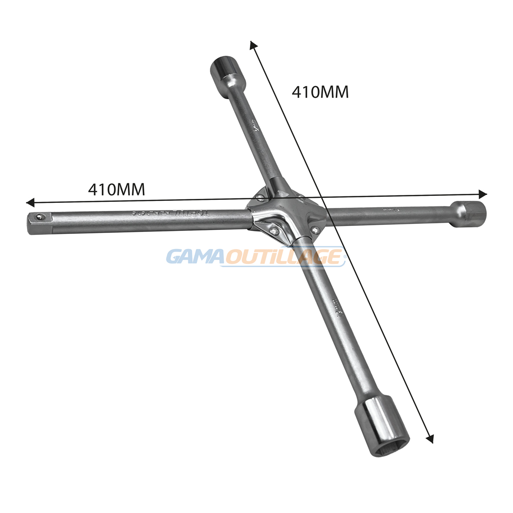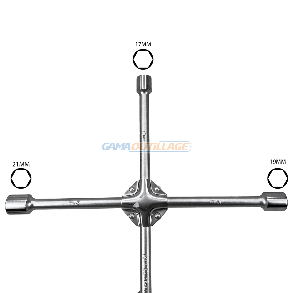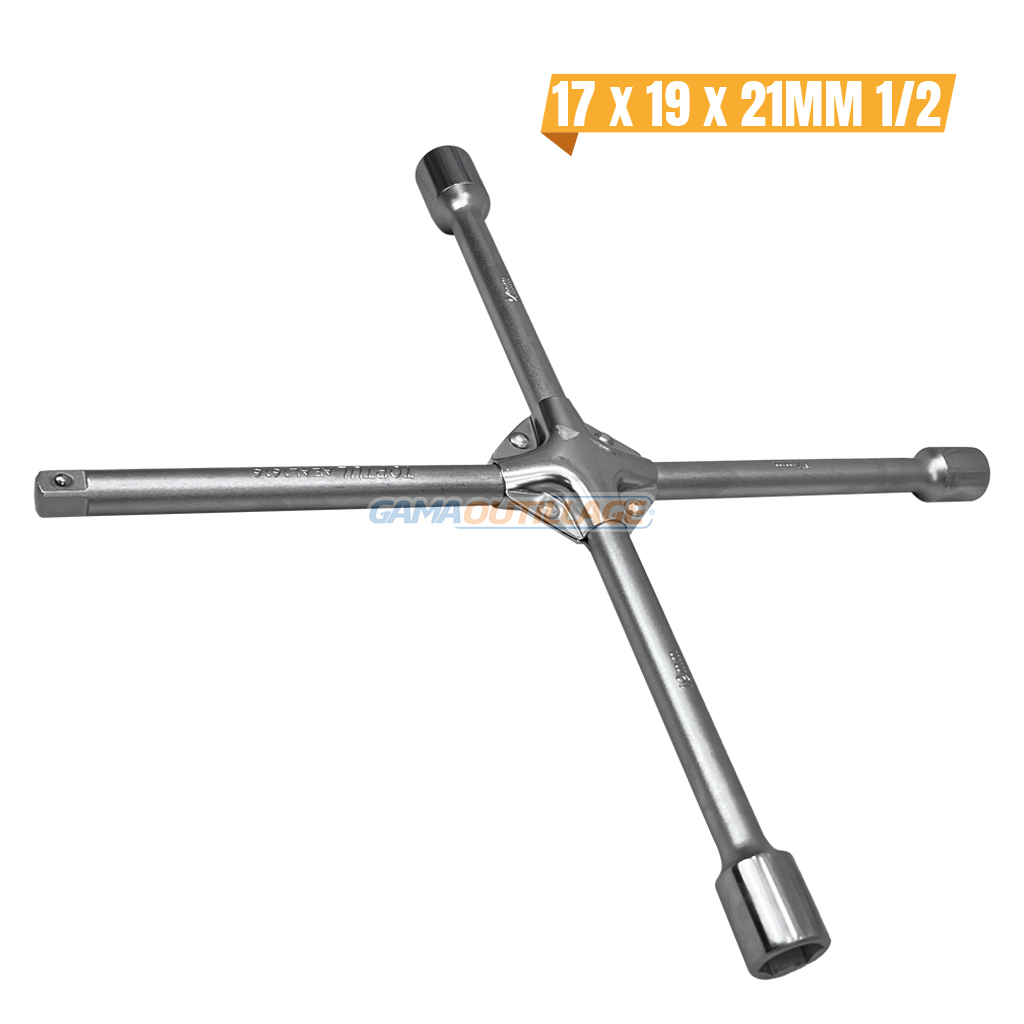 GAMAOUTILLAGE vous propose un CLE CROIX 3/4″ LOURD TOPTUL, est une clé à écrou de roue robuste à quatre voies. Elle convient à la plupart des camionnettes et camions et dispose d’hexagones d’entraînement à bride de 17, 19 et 21 mm et d’un entraînement carré de 11/2″. Elle est fabriquée en acier allié au chrome vanadium traité thermiquement, ce qui la rend durable et résistante.