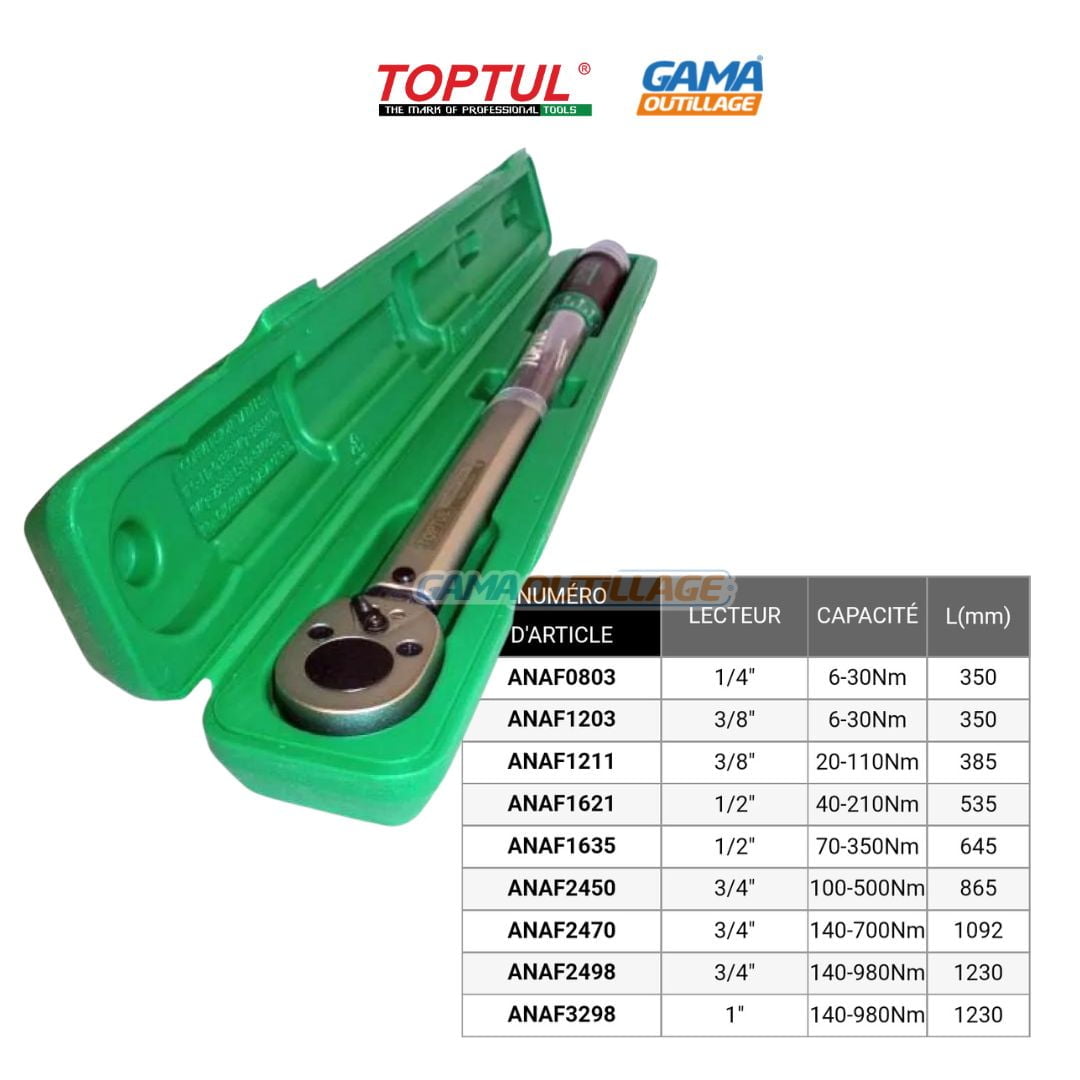 La CLE DYNAMOMETRIQUE 3/4P 100-500NM du marque TOPTUL Algérie, est disponible chez GAMA outillage Algérie, au prix Algérie compétitif, avec livraison 58 wilaya.