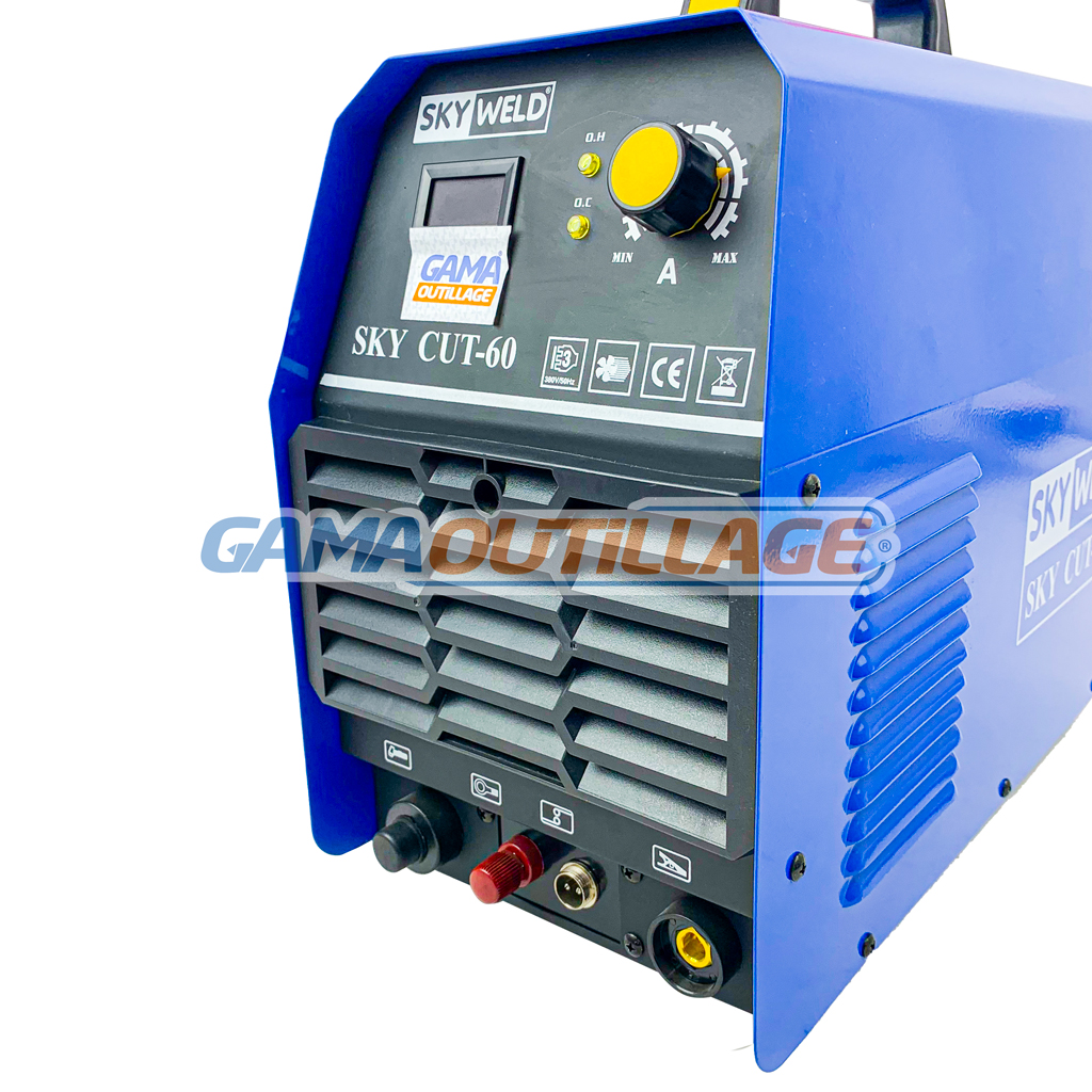 DECOUPEUR PLASMA 60A SKYWELD, est un outil électrique utilisé pour couper des métaux. Il fonctionne en créant un arc électrique entre une torche plasma et la pièce à couper.