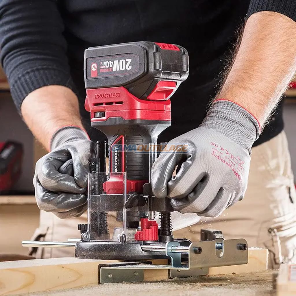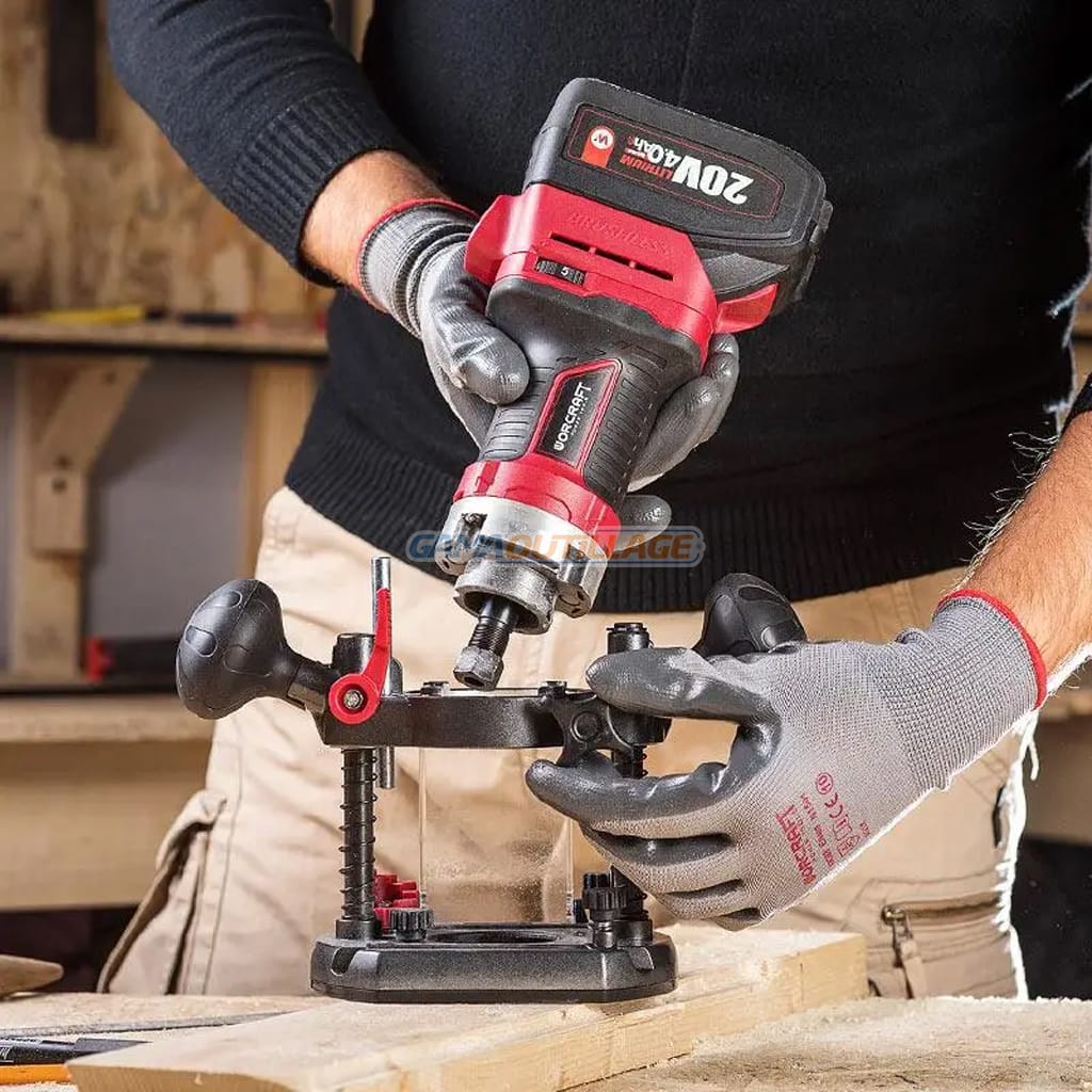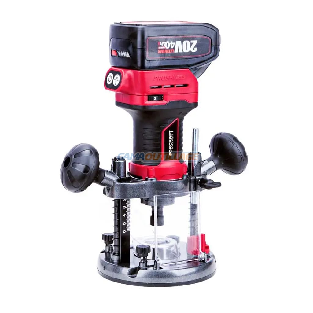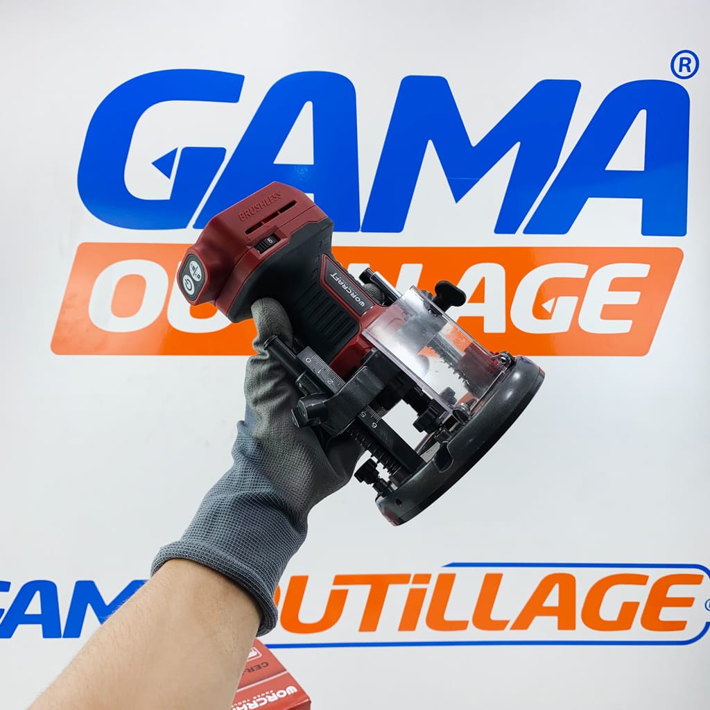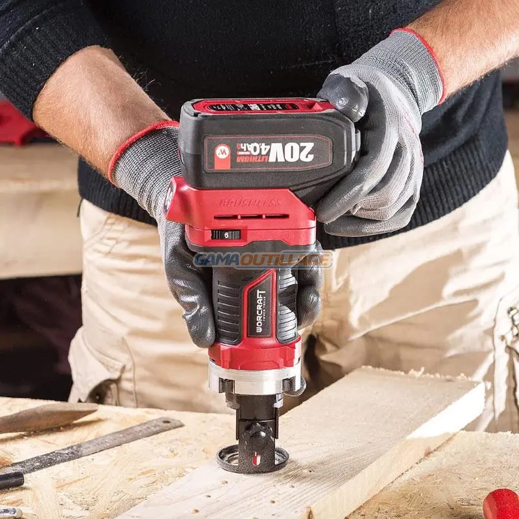 GAMAOUTILLAGE vous propose une DEFONCEUSE SOLO S/FIL 20V 6/8MM WORCRAFT, le routeur sans fil sans balais WORCRAFT CER-S20LiB est un outil unique et polyvalent pour former des profils, des rainures et des trous longitudinaux.