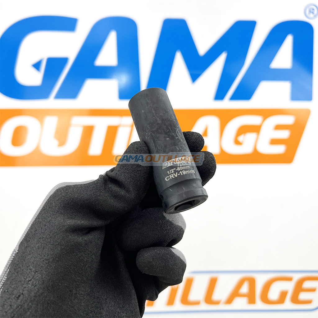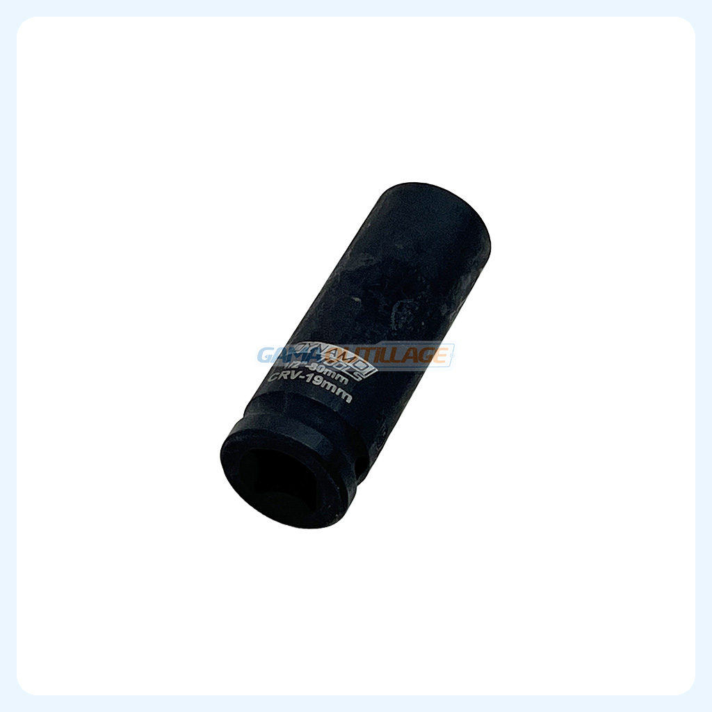 Douille à choc longue 19mm GA737. Entraînement 1/2″, 6 pans, 78mm de long. Acier CR-V résistant. Idéale clés à chocs. Chez GAMA OUTILLAGE.