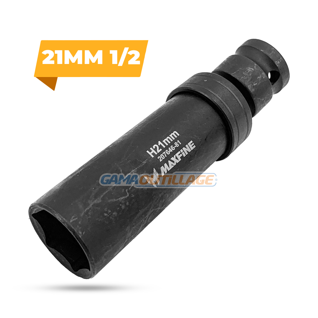 GAMAOUTILLAGE vous propose une DOUILLE N°21 ARTICULEE A CHOC, est un outil conçu pour serrer et desserrer des écrous et des boulons de 21 mm de diamètre, à l’aide d’une clé à chocs. Elle est dotée d’une articulation qui lui permet d’accéder à des fixations difficiles d’accès, notamment dans les angles ou les espaces confinés.