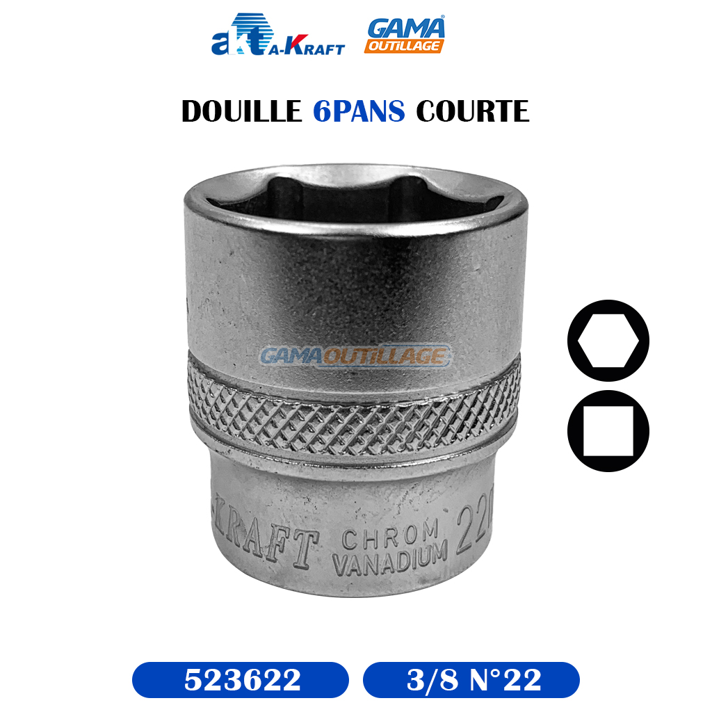 DOUILLE 3/8 N°22 6PANS COURTE AKRAFT