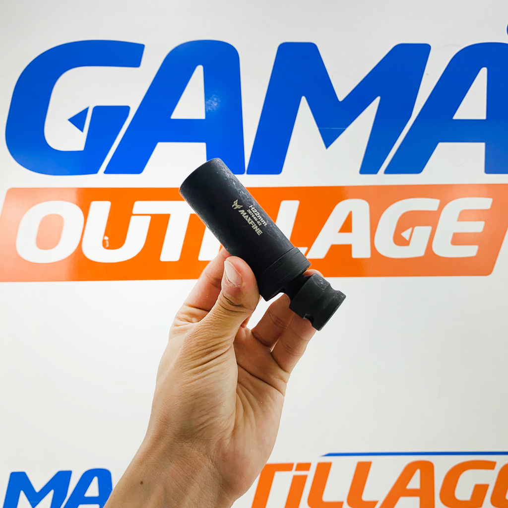 GAMAOUTILLAGE vous propose une DOUILLE N°22 ARTICULEE A CHOC, est un outil conçu pour serrer et desserrer des écrous et des boulons de 22 mm de diamètre, à l’aide d’une clé à chocs. Elle est dotée d’une articulation qui lui permet d’accéder à des fixations difficiles d’accès, notamment dans les angles ou les espaces confinés.