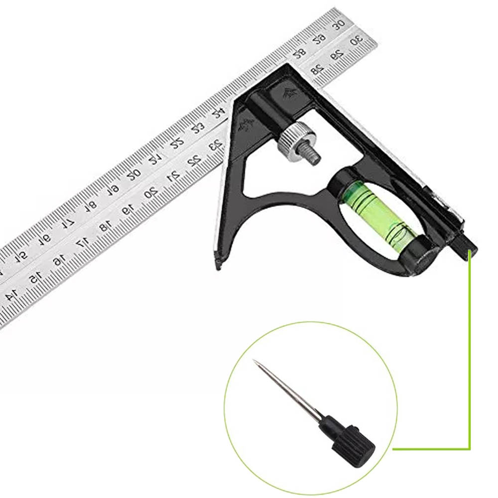 Toute indiquée pour vos travaux de marquages et de mesures, l’équerre combinée possède une lame rainurée de 12 pouces calibrée avec graduations impériales (1/16 pouce et 1/32 pouce) et métriques (millimètres). Le boulon de serrage s’aligne automatiquement, et le manche acier assure un nivellement de haute précision avec sa pointe à tracer et sa fiole de niveau intégrée.