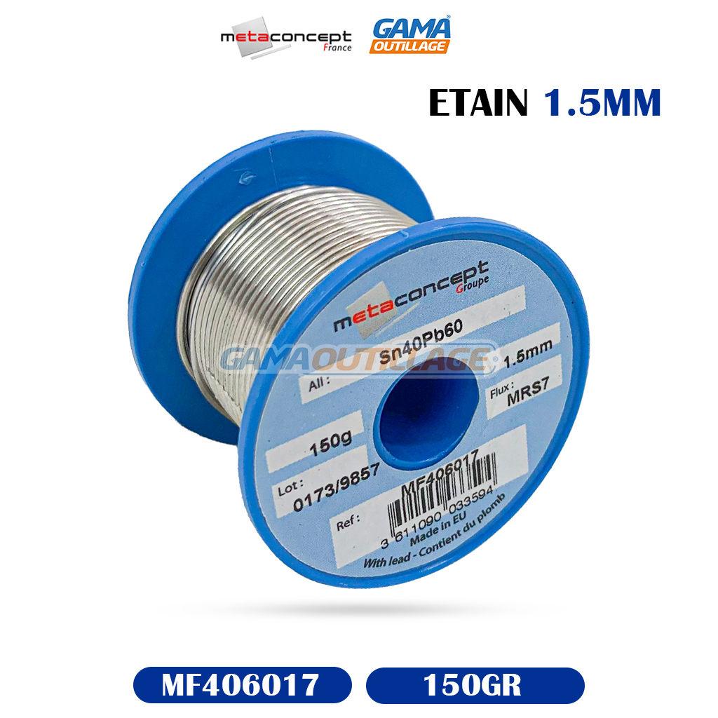 GAMAOUTILLAGE vous suggéré un ETAIN 1.5MM 150GR METACONCEPT, est un fil d’étain de 1,5 mm de diamètre et de 150 grammes de poids, produit par la marque MetaConcept. Il est généralement utilisé pour la soudure à l’étain, un procédé qui consiste à assembler des pièces métalliques en utilisant un alliage d’étain et de plomb fondu.