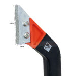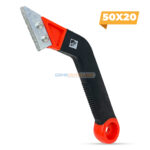 - La première est le grattoir à joints RUBI traditionnel, doté d’un manche ergonomique et de deux plaquettes en carbure de tungstène électrodéposé très résistant à l’abrasion.