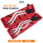 GAMAOUTILLAGE vous propose un JEUX DE CLE POUR TENDEUR, est un ensemble d’outils spécifiques conçus pour desserrer et serrer les galets tendeurs de courroie. Ces derniers sont des composants essentiels du système de distribution ou d’accessoires d’un véhicule, permettant de maintenir la tension de la courroie.
