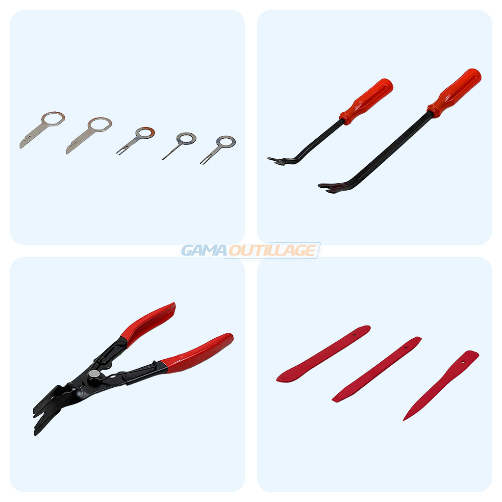 Composé de leviers en plastique résistant, de pinces, de crochets et d’extracteurs métalliques, il est idéal pour les professionnels de l’automobile et les bricoleurs.