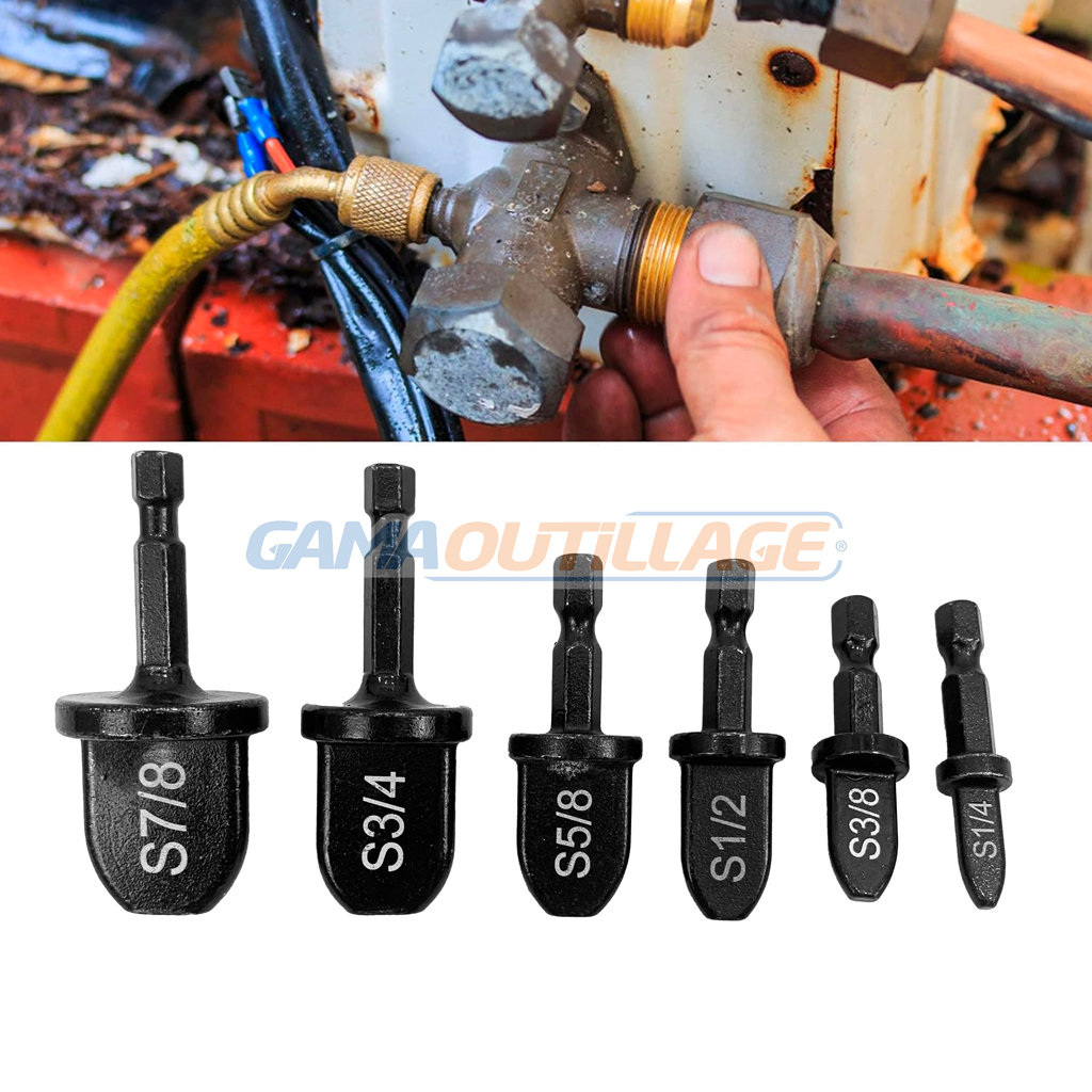 KIT EXPANSSION TUBE EN CUIVRE 06PCS MAXFINE, est un ensemble d’outils spécialement conçus pour agrandir l’extrémité d’un tube en cuivre afin de pouvoir y insérer une raccord de tuyauterie.