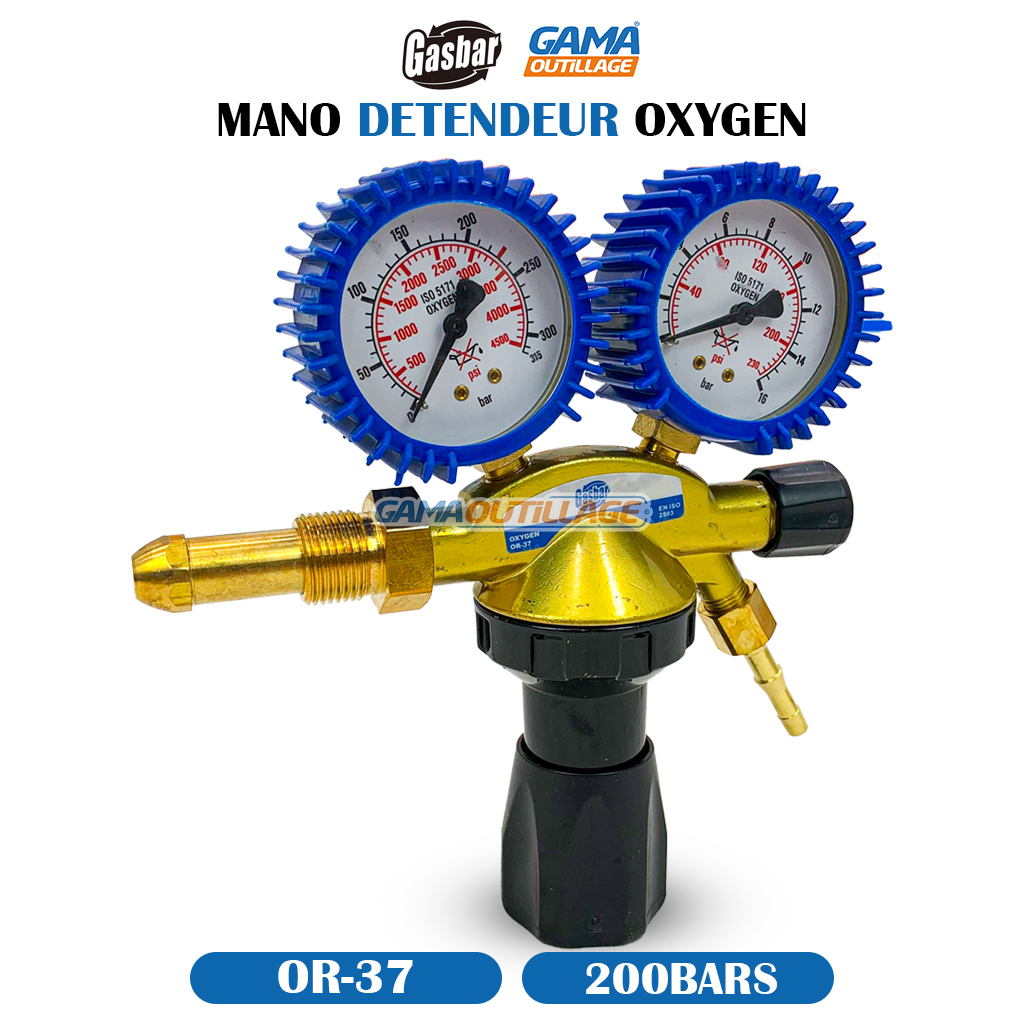 MANO DETENDEUR OXYGEN GASBAR, est un appareil de régulation de pression utilisé pour le soudage à l’argon. Il permet de réduire la pression du gaz contenu dans la bouteille à une pression de travail adaptée à l’application.