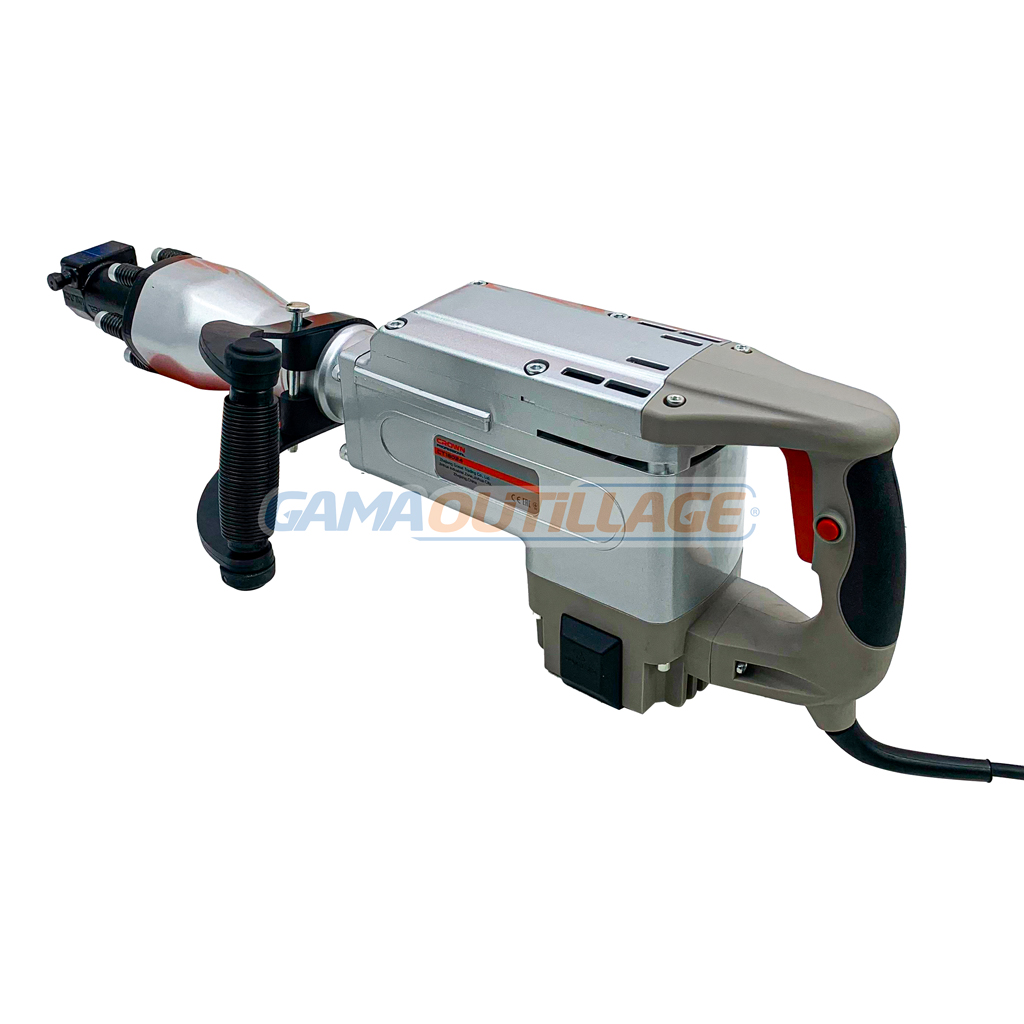 - Le marteau-piqueur avec une énergie d’impact de 45J est conçu pour creuser des niches et des ouvertures, détruire des structures de construction en brique, pierre, béton, ainsi que casser et détacher de l’asphalte, du gravier et des pavés en pierre.