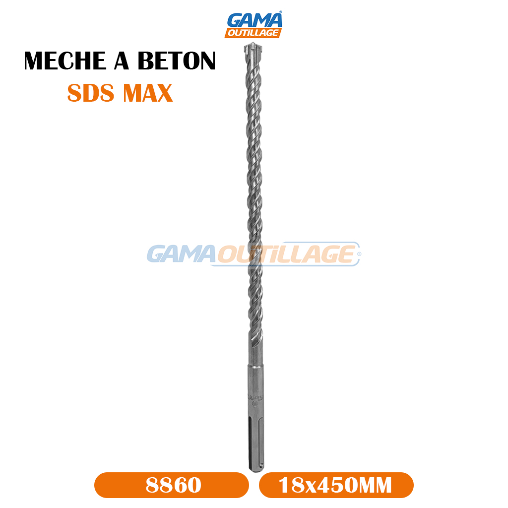 GAMAOUTILLAGE vous propose une MECHE A BETON 18*450 SDS MAX TA, est un outil utilisé pour percer des trous dans le béton, la pierre et les matériaux similaires. Elle a un diamètre de 18mm et une longueur totale de 450mm.