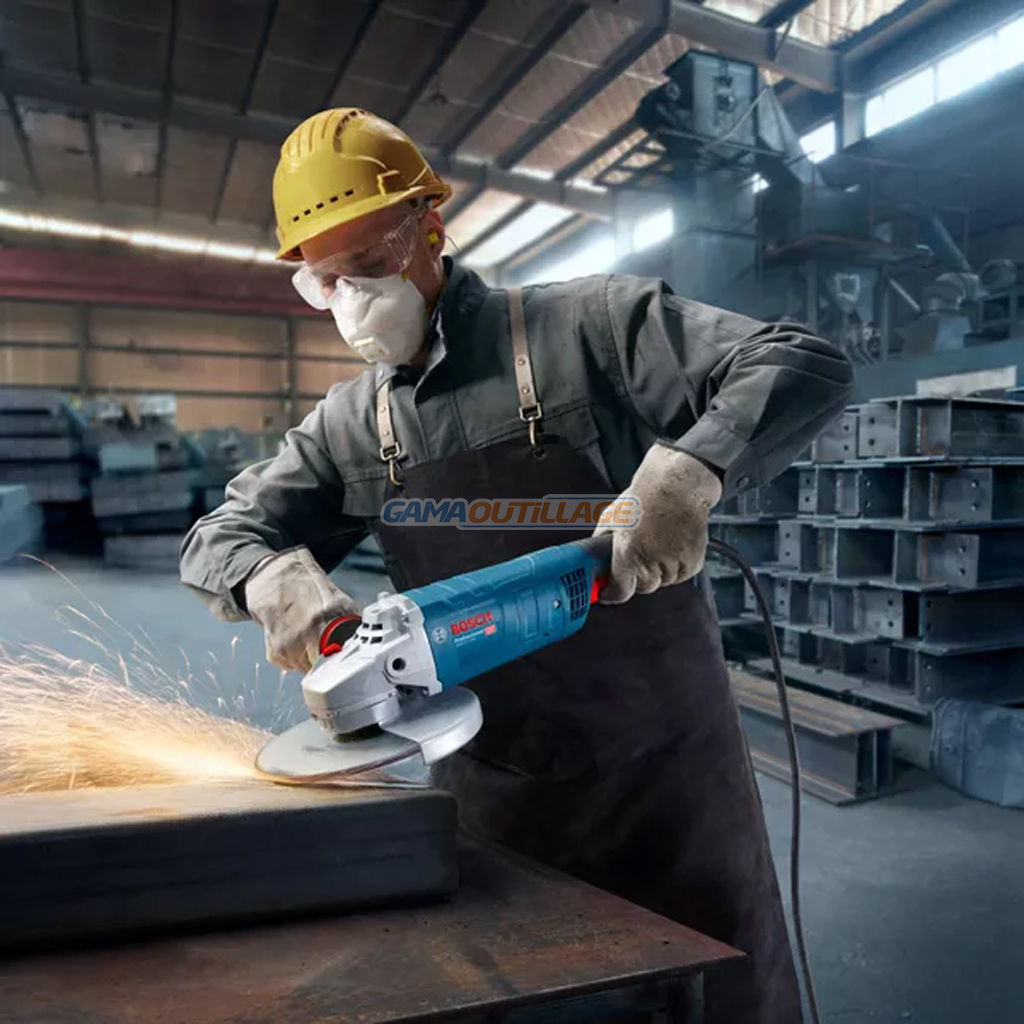 GAMAOUTILLAGE vous propose une MEULEUSE 230MM 2700W BOSCH, est un outil électrique professionnel, conçu pour les travaux de coupe, de meulage et de brossage sur une large variété de matériaux, tels que le métal, la pierre, le béton et le carrelage. Sa puissance élevée et sa robustesse en font un équipement indispensable pour les professionnels du bâtiment, de la construction et de l’industrie.