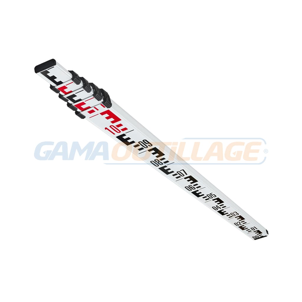 - Avec sa double lecture en centimètre sur la face avant et en mm sur la face arrière, elle garantit des mesures de niveaux précises, parfaite pour délimiter un terrain, accomplir les travaux de terrassement, creuser une piscine et bien d’autres encore.