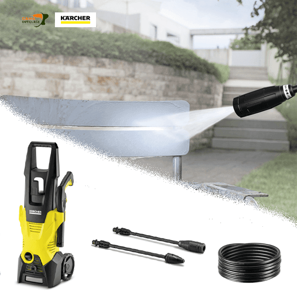 Le nettoyeur haute pression “K3” est exclusivement disponible chez Gama outillage Algérie. Idéal pour une utilisation occasionnelle et des salissures normales, par ex. sur les vélos, les clôtures de jardin, les motos, etc.