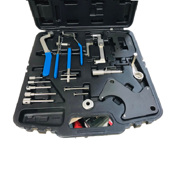 - Ce coffret comprend ces outils importants pour les travaux suivants : Verrouillage du volant, Verrouiller le vilebrequin / arbre de pompe, Blocage de l’arbre de la pompe d’injection. Retirer la poulie de vilebrequin, Tension de la courroie de distribution, Réglage de la jauge de positionnement d’arbre à cames, Arbre de la pompe au vilebrequin lors du changement de la courroie de distribution, Serrer la ceinture.