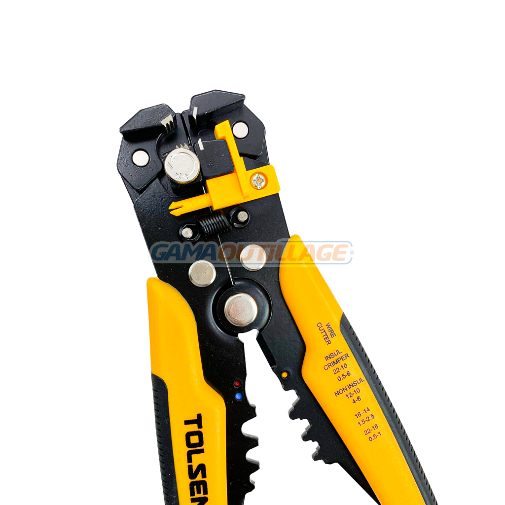 GAMAOUTILLAGE vous propose une PINCE A DENUDER AUTOMATIQUE 8″ TOLSEN, la sertisseuse, coupeuse, dénudeuse automatique multifonctionnelle peut être utilisée avec la plupart des fils électriques de 0,2 à 66 mm/carré.