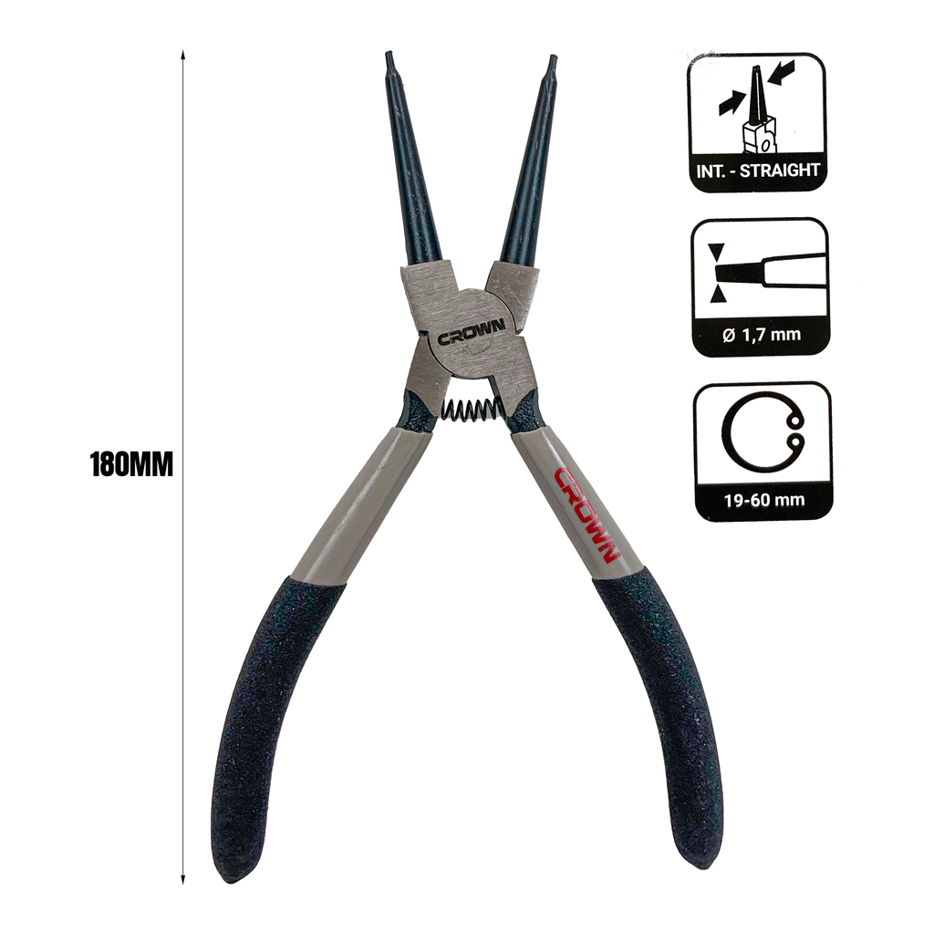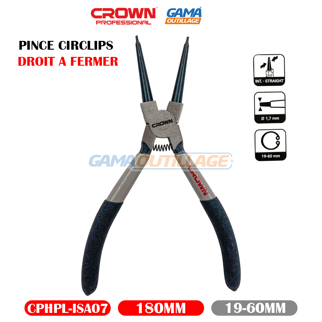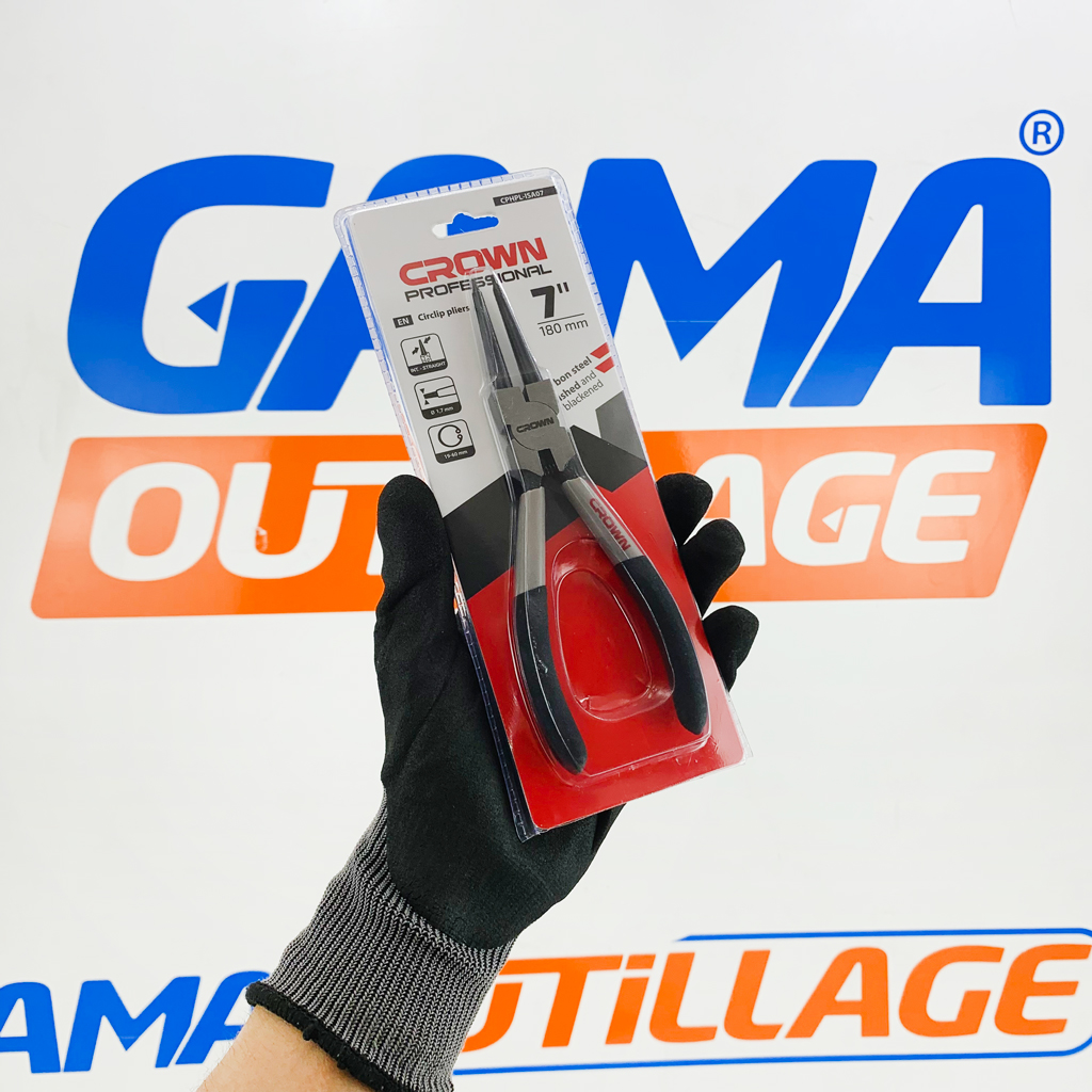 PINCE CIRCLIPS DROIT A FERMER 7″ CROWN, est un outil professionnel utilisé pour installer et retirer des circlips. Elle est fabriquée en acier carbone pour une longue durée de vie.