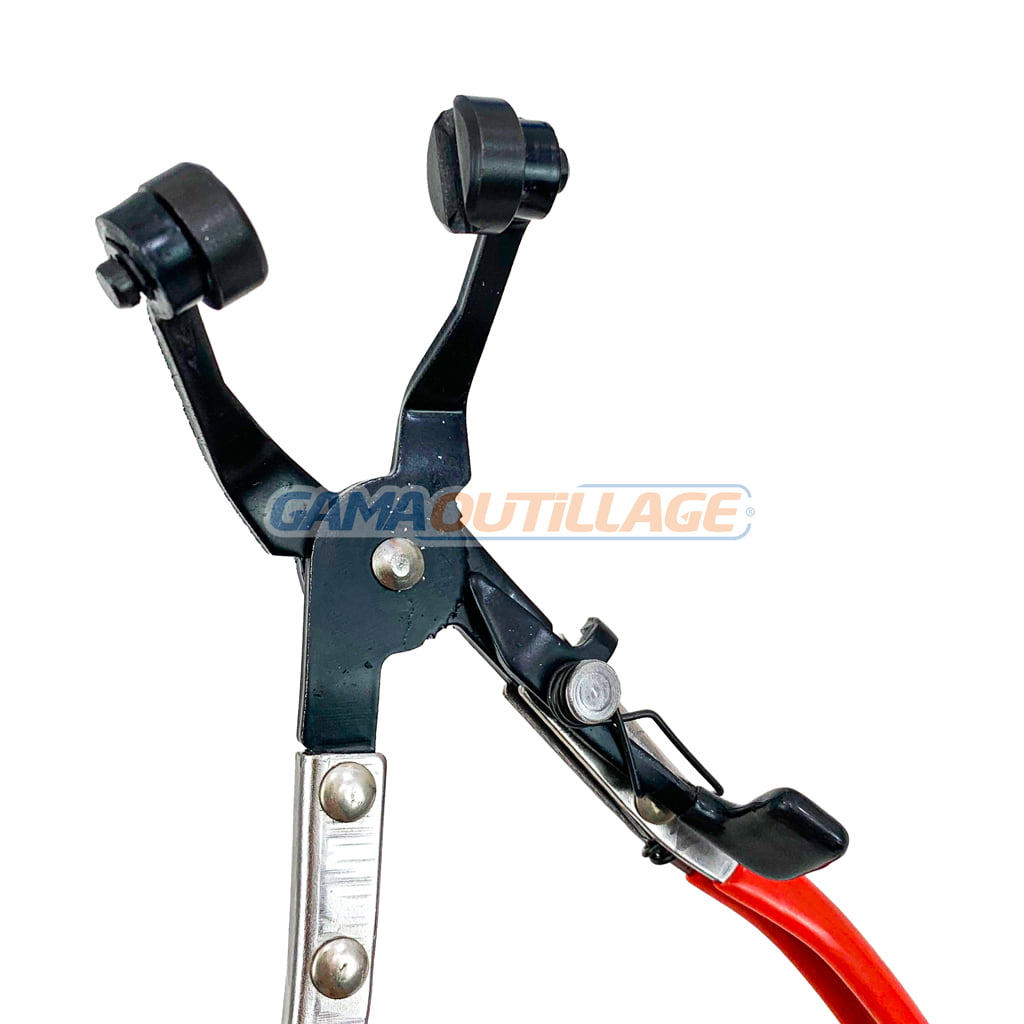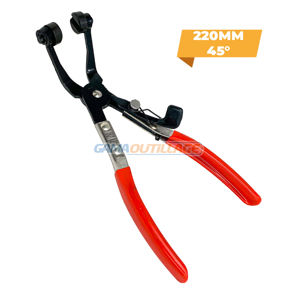 GAMAOUTILLAGE vous propose une PINCE COLLIIER COUDEE 220MM DNM, est un outil manuel conçu pour serrer et desserrer des colliers de serrage sur des tuyaux, des gaines ou d’autres éléments. Sa forme coudée à 90° permet d’accéder facilement aux colliers difficiles à atteindre, dans des espaces confinés ou sur des tuyaux courbés.