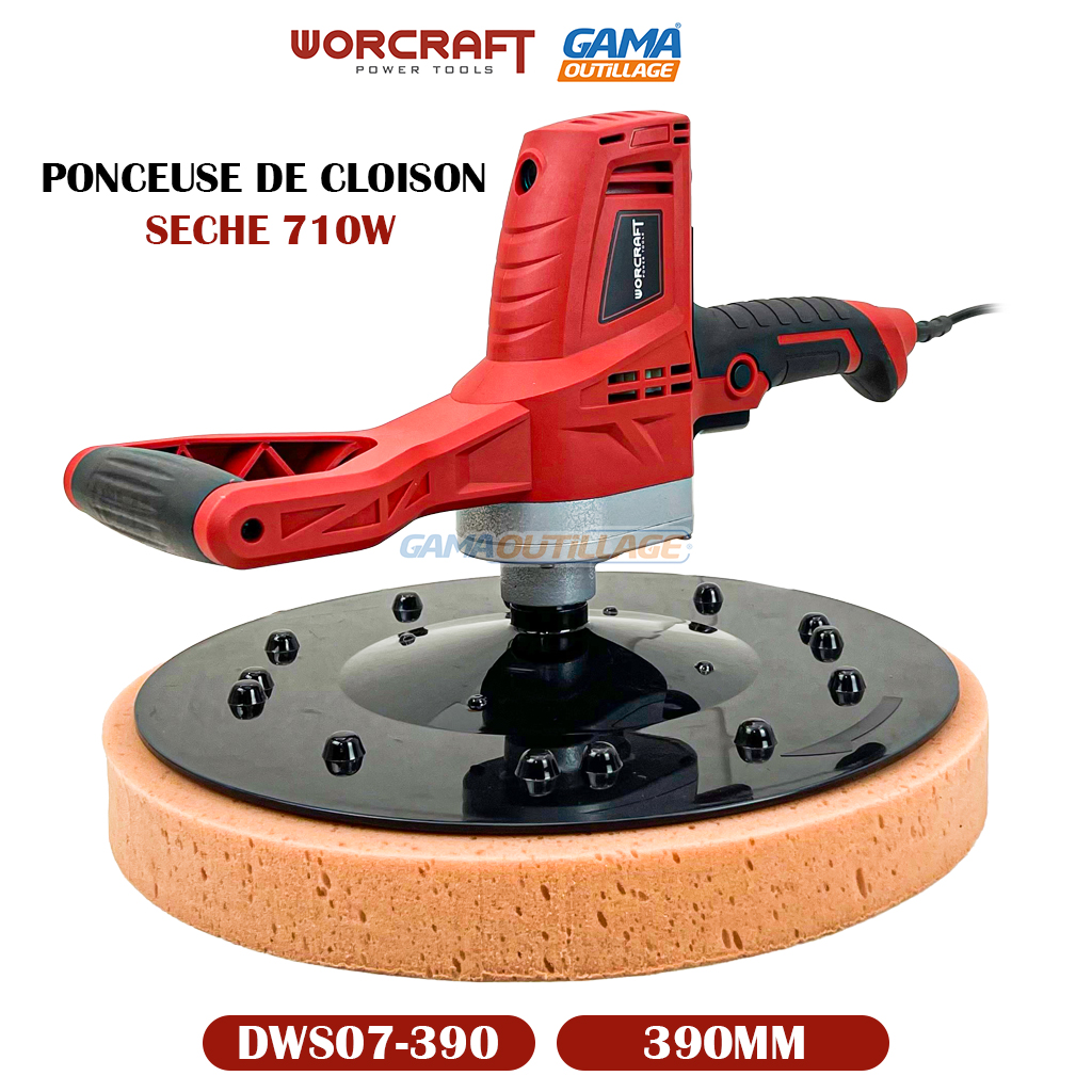 PONCEUSE DE CLOISON SECHE 710W 390MM WORCRAFT, est un outil électrique conçu spécifiquement pour les travaux de finition sur les plaques de plâtre. Elle est appréciée pour sa puissance, sa maniabilité et son efficacité dans le lissage des surfaces avant peinture.