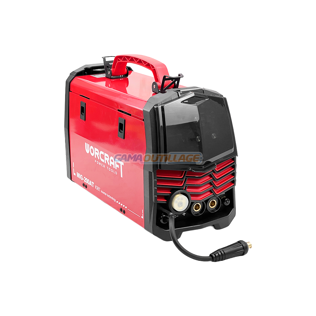 Poste à souder WORCRAFT MIG-200AT multiprocédé (TIG, MIG, MMA) 200A. Idéal pour acier, inox, alliages. Robuste avec affichage numérique.