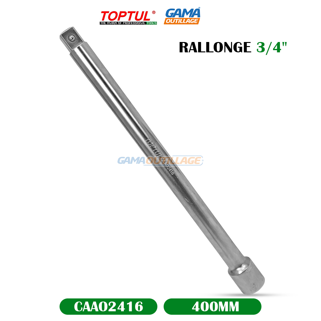 GAMAOUTILLAGE vous propose une RALLONGE 3/4″ 400 MM TOPTUL, est un outil indispensable pour tout mécanicien ou bricoleur. Elle permet d’atteindre les écrous et boulons difficiles d’accès, en particulier dans les espaces confinés.