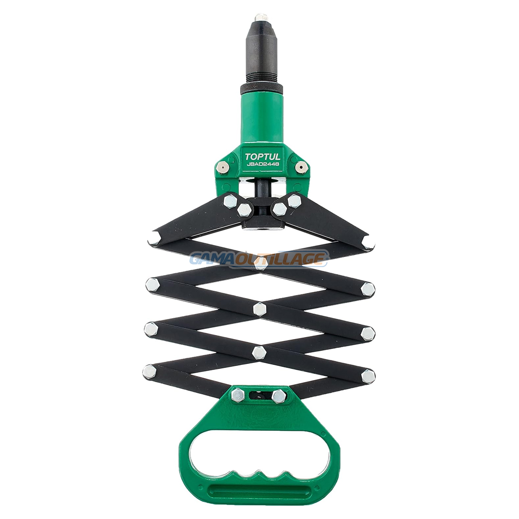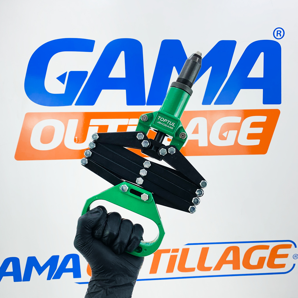 GAMAOUTILLAGE vous propose une RIVETEUSE ACCORDEON TOPTUL, est un outil robuste et fiable conçu pour les applications industrielles lourdes. Elle est dotée d’une construction entièrement en acier pour une durabilité maximale et d’un mécanisme de ciseaux puissant pour une force de rivetage élevée.