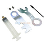 - L’ensemble comprend 4 embouts standards interchangeables, un collecteur de mandrins à rivets, deux clés mixtes de service et une brosse.