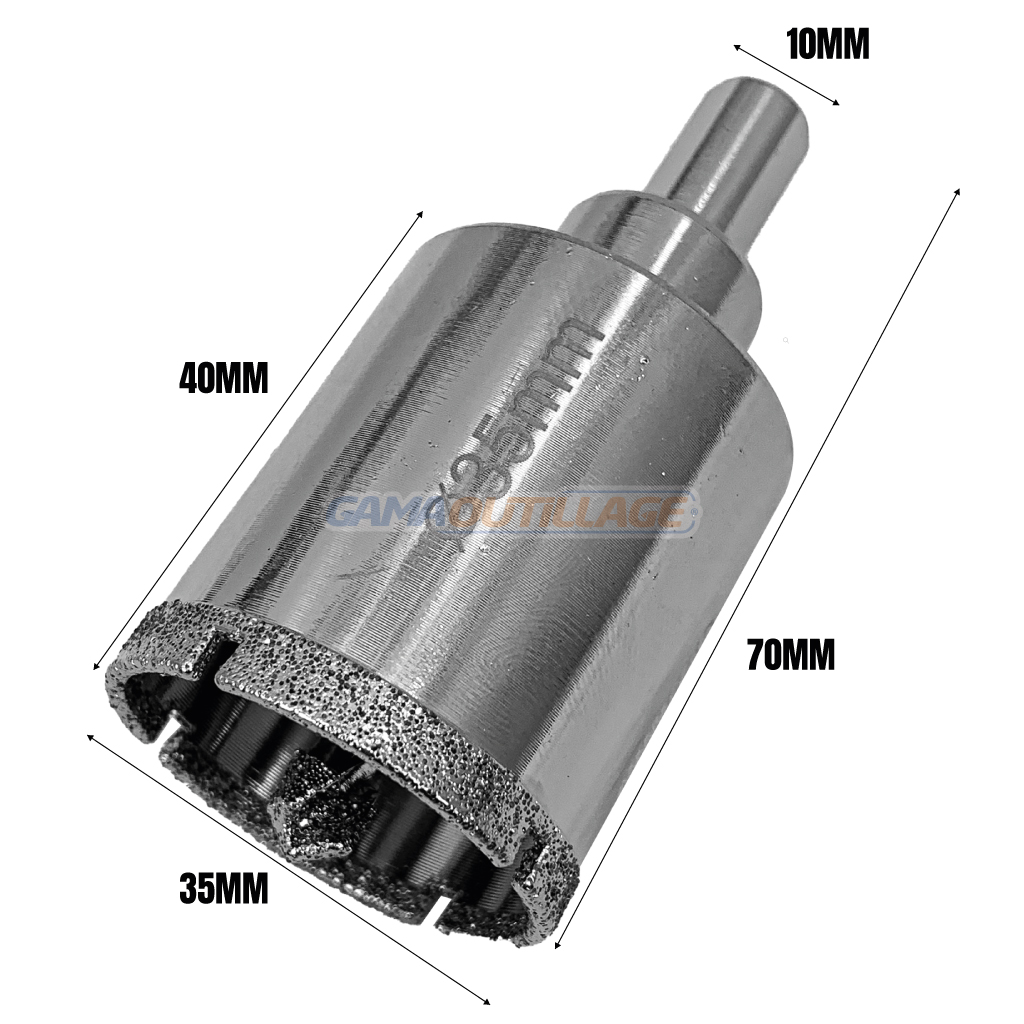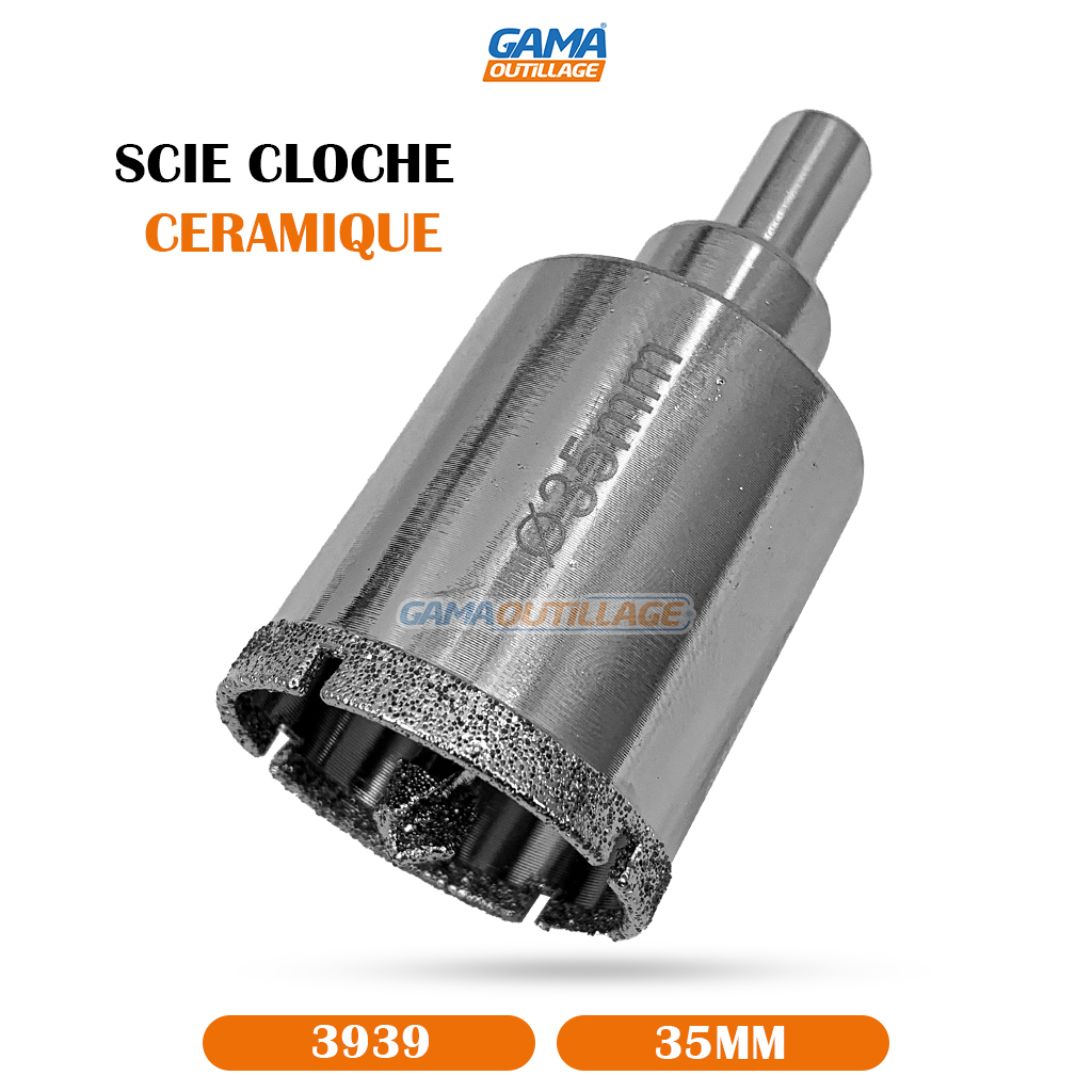 GAMAOUTILLAGE vous propose une SCIE CLOCHE CERAMIQUE 35MM A MECHE TA, est un outil conçu pour percer des trous précis et propres dans des matériaux durs et cassants tels que le carrelage, la céramique, le marbre, le granit.