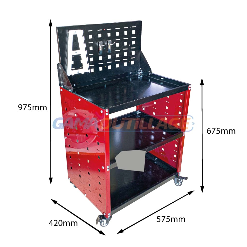 GAMAOUTILLAGE vous propose SERVANTE 3 ETAGES AST, Chariot à Outils Utilitaire Armoire équipement de Garage Chariot en Acier 03 étages Rangement d’outils Travail à Domicile Bricolage Atelier Coffre pour Jardin extérieur, côtés perforés pour accessoirisation.