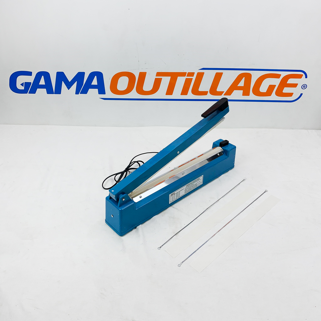GAMAOUTILLAGE vous propose une SOUDEUSE DE SACHET 400MM TA, est une machine conçue pour sceller des sacs en plastique d’une largeur maximale de 400mm. Elle est utilisée pour fermer des sacs de différentes épaisseurs et de différents matériaux, tels que les films / sacs PE / PP, les films à bulles, etc.