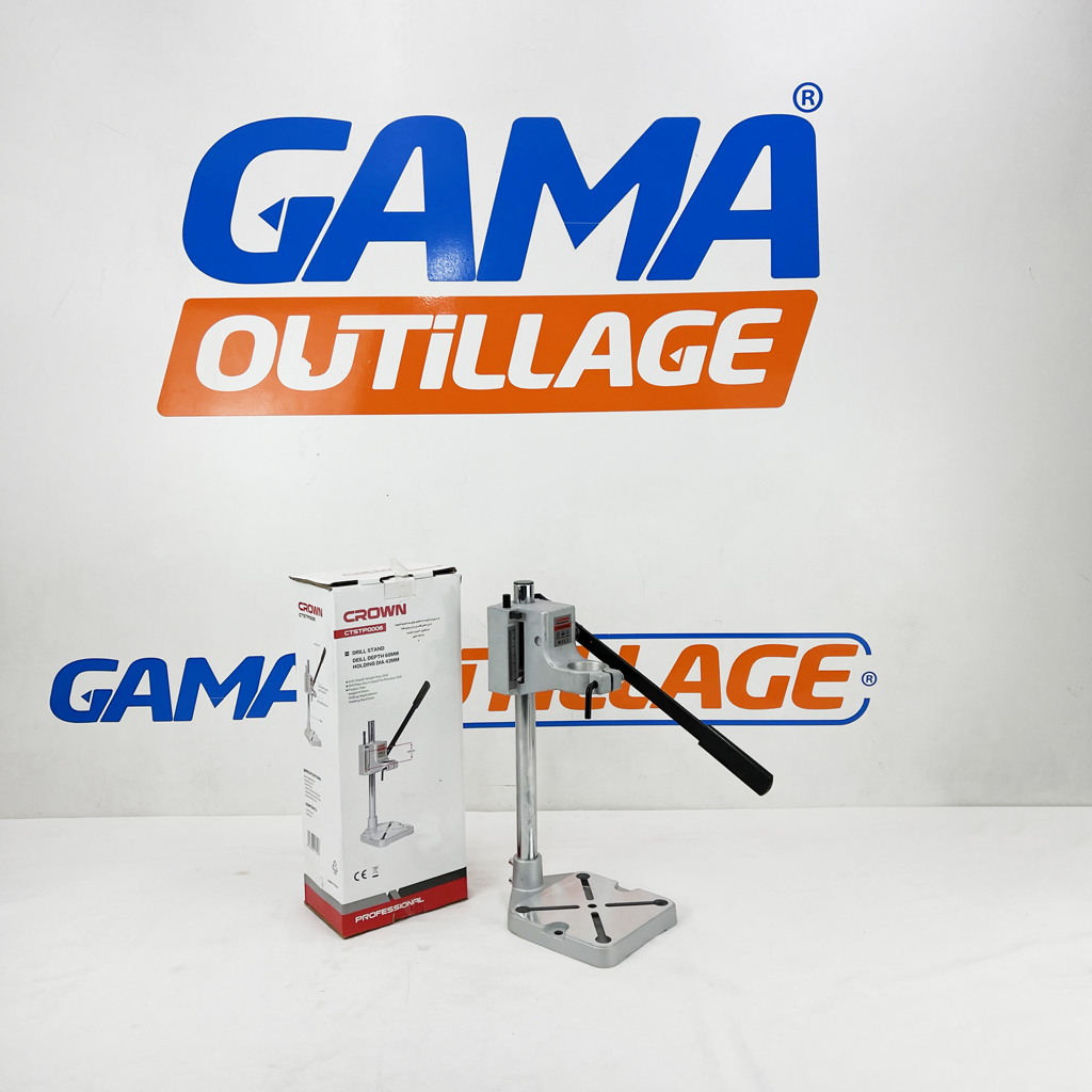 GAMAOUTILLAGE vous propose une SUPPORT PERCEUSE CROWN, est un outil qui permet de maintenir une perceuse en place et de percer des trous précis et droits dans divers matériaux. Il s’agit d’un porte-foret réglable, parfait pour une utilisation en atelier ou à la maison.