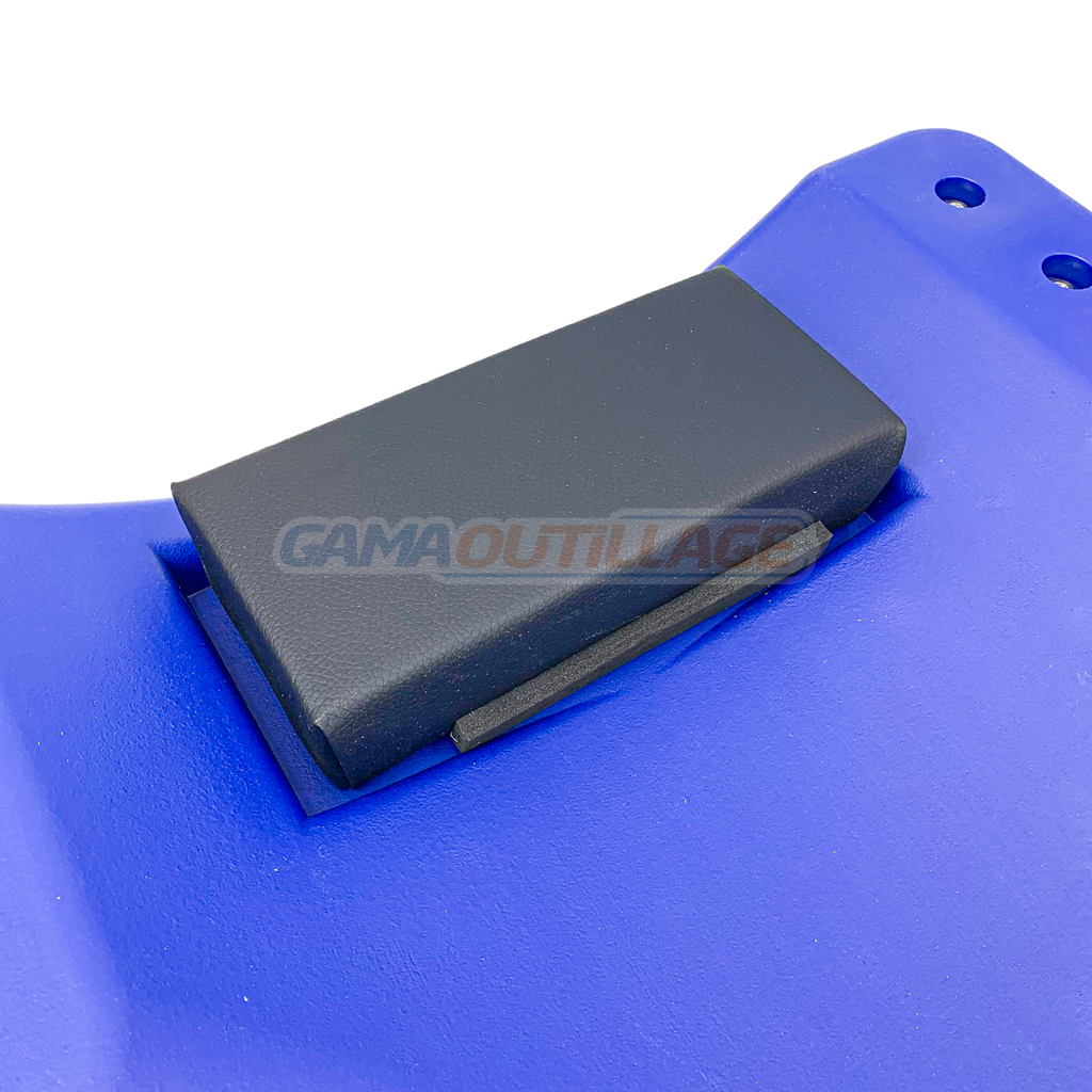 - Le chariot dispose de deux compartiments intégrés facile d’accès en position allongée, ainsi que d’un appui tête amovible pour plus de confort durant le travail.