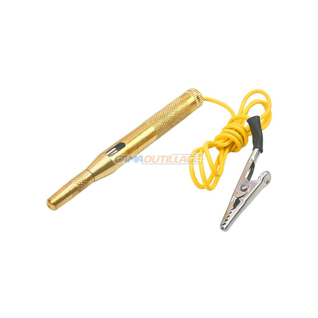 Testeur de circuit auto DNM 6/12/24V. Robuste, précis, en laiton avec câble souple et pince. Idéal pour véhicule ou atelier. Disponible chez GAMA OUTILLAGE.