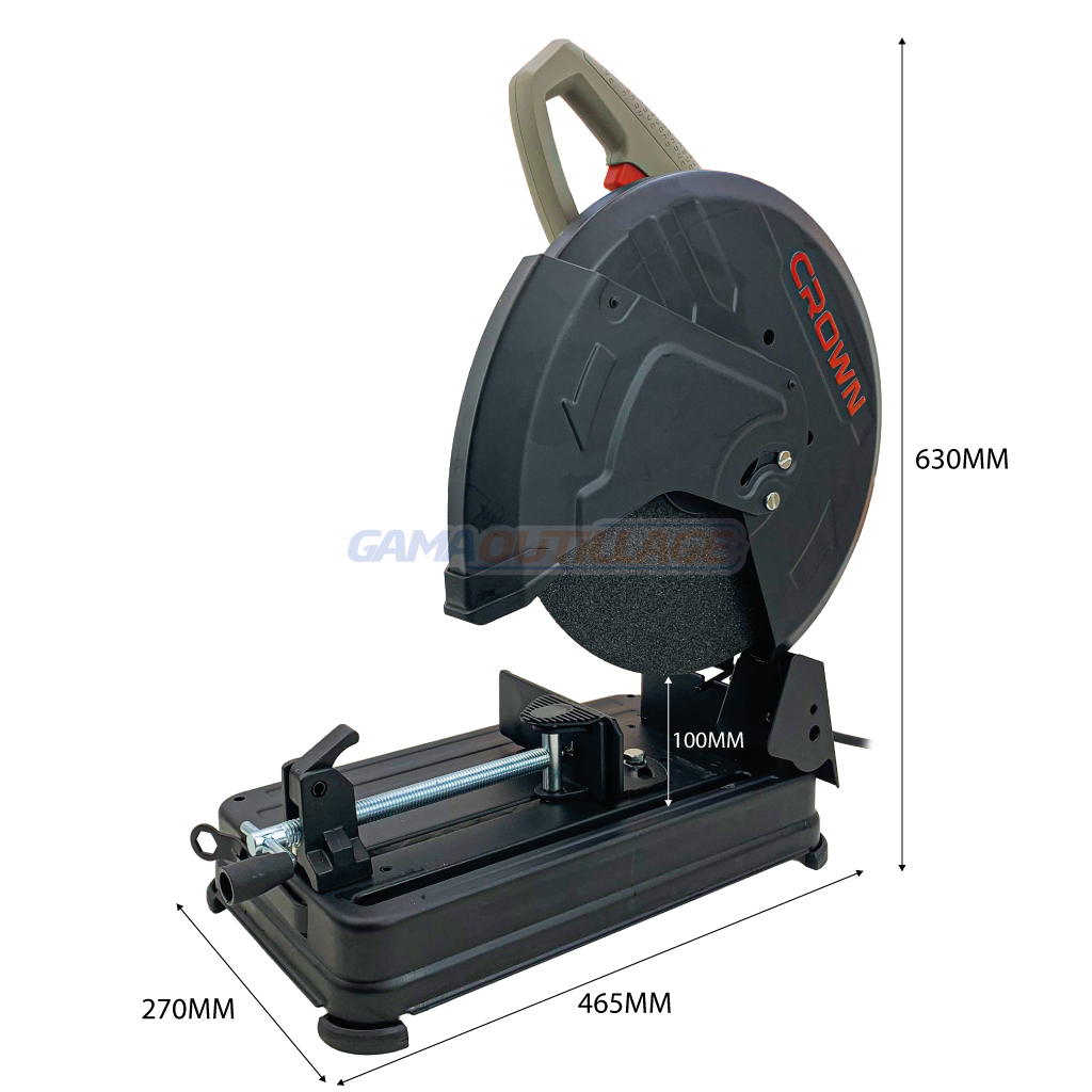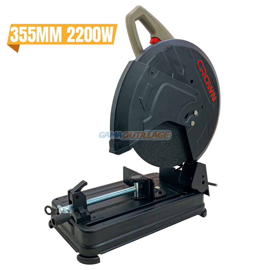 TRONCONNEUSE ACIER 355MM 2200W CROWN, est un outil électrique robuste et performant, spécialement conçu pour couper efficacement divers types de métaux ferreux.