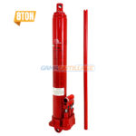 - Le cric hydraulique à vérin long est doté d’une pompe à double piston et d’une base à chape conçue pour une utilisation résidentielle et commerciale