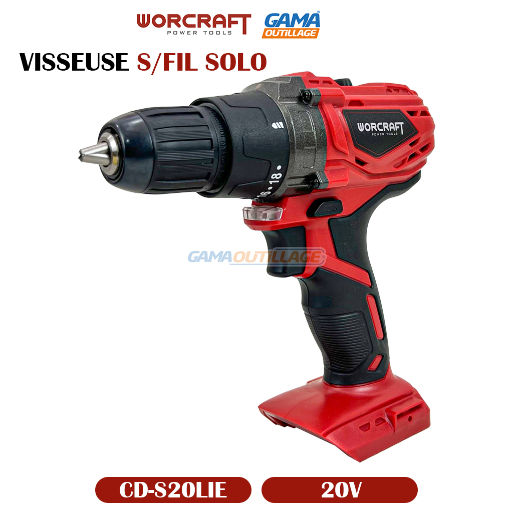 GAMAOUTILLAGE vous propose une VISSEUSE S/FIL SOLO 20V WORCRAFT, En tant que membre de la famille ONE-FOR-ALL, cette perceuse sans fil WORCRAFT CHD-S20LiE offre le mélange idéal de puissance et de polyvalence pour visser des vis ou percer dans le métal et le bois.